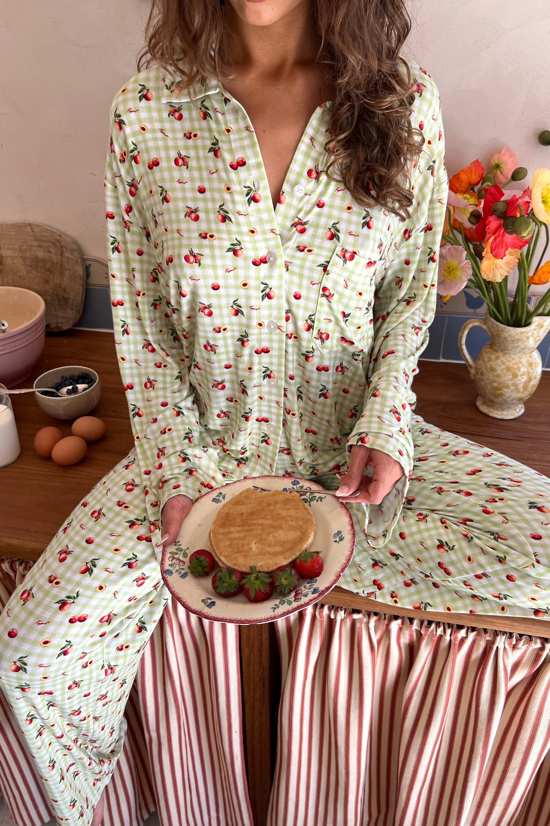 The Bobbi Pants are the sweetest and softest pants you'll own! Crafted from buttery soft Bamboo fabric, they features our exclusive Kapri Peach print. Perfectly pair with the matching Nara Blouse.
